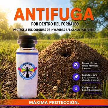 Uso externo (anti-invasión): aplicar en base del formicario, patas de mesas o soportes, perímetro exterior de forrajeo o de entradas, creando una zona de exclusión que evita el ingreso de hormigas externas.